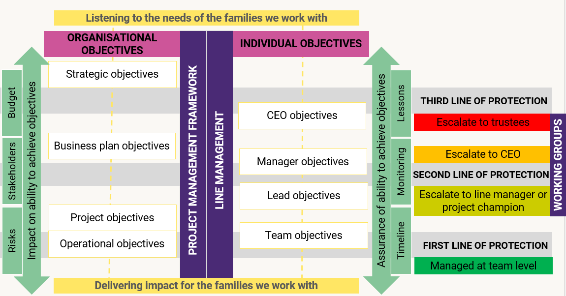 As for when it’s relevant, our governance structure enables us to do this well – our strategic reviews happen every 5 years and this is when trustees ensure that our strategic plan will meet our charitable purpose. Then, our yearly business plan objectives led by the CEO involve consulting with various stakeholders through conversations, meetings and surveys: members, families and staff. The objectives are then drafted to go back to trustees to sign off. As trustees are the only members of the charity with voting power, our governance structure and processes ensure that they have all the necessary information to do this most impactfully – each level of our charity has input at the right time leading to this.